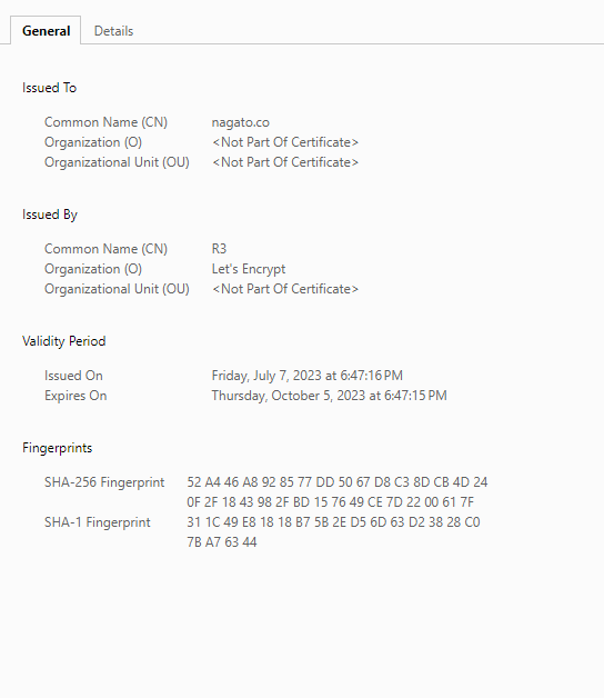 그래서 밑져야 본전이라는 마음으로 관리 페이지에서 외부 도메인을 삭제-재등록했더니 티스토리 관리 페이지 기준으로는 약 1시간만에 TLS 인증서가 재발급되었다고 했지만-이후 인증서 발급 시간을 보면 거짓말은 아닌 듯-인증서를 갱신/적용 과정의 지연이 있어서인지 실제로 새 인증서를 받아와 브라우저가 에러 없이 웹페이지를 보여주는 건 강제 리셋을 진행한지 두어 시간 후였습니다.