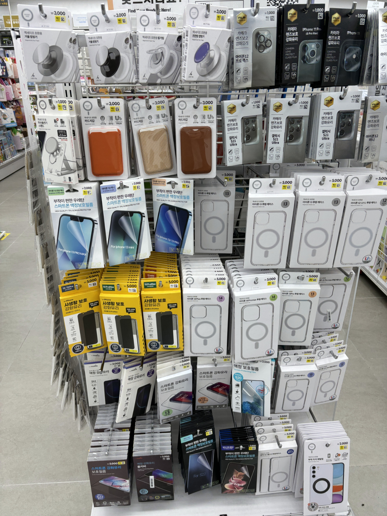 가장 위에 첨부한 다이소 사진에도 많은 비중을 차지하고 있는 MagSafe 지원 투명 케이스도 속칭 가심비가 나쁘지 않다고 들었는데, 적어도 제 동네에 있는 지점에는 아직 15 라인업은 갖추어져 있지 않더군요.