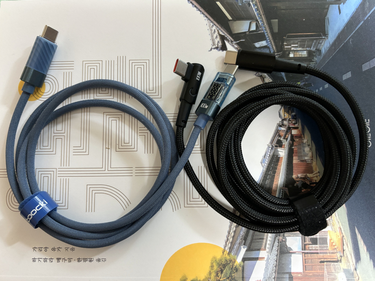 가장 먼저 소개드릴 제품은 SPA 의류보다 쓰레기 증진에 기여하는 게 아닌가 싶을 정도로 요상한 물건이 주류인 '천원마트'에서 구입한 와트수 나오는 Toocki USB-C 케이블입니다. 이름처럼 가격이 저렴한 대신 검색이 불가능하고 최소 3개 이상 구입해야 배송이 가능한 시스템인데요. 최소 배송 갯수를 채우기 위해 사진에도 보이는 L자형 USB-C 케이블 등을 구입했지만 주 목적은 이 제품이었는데요.