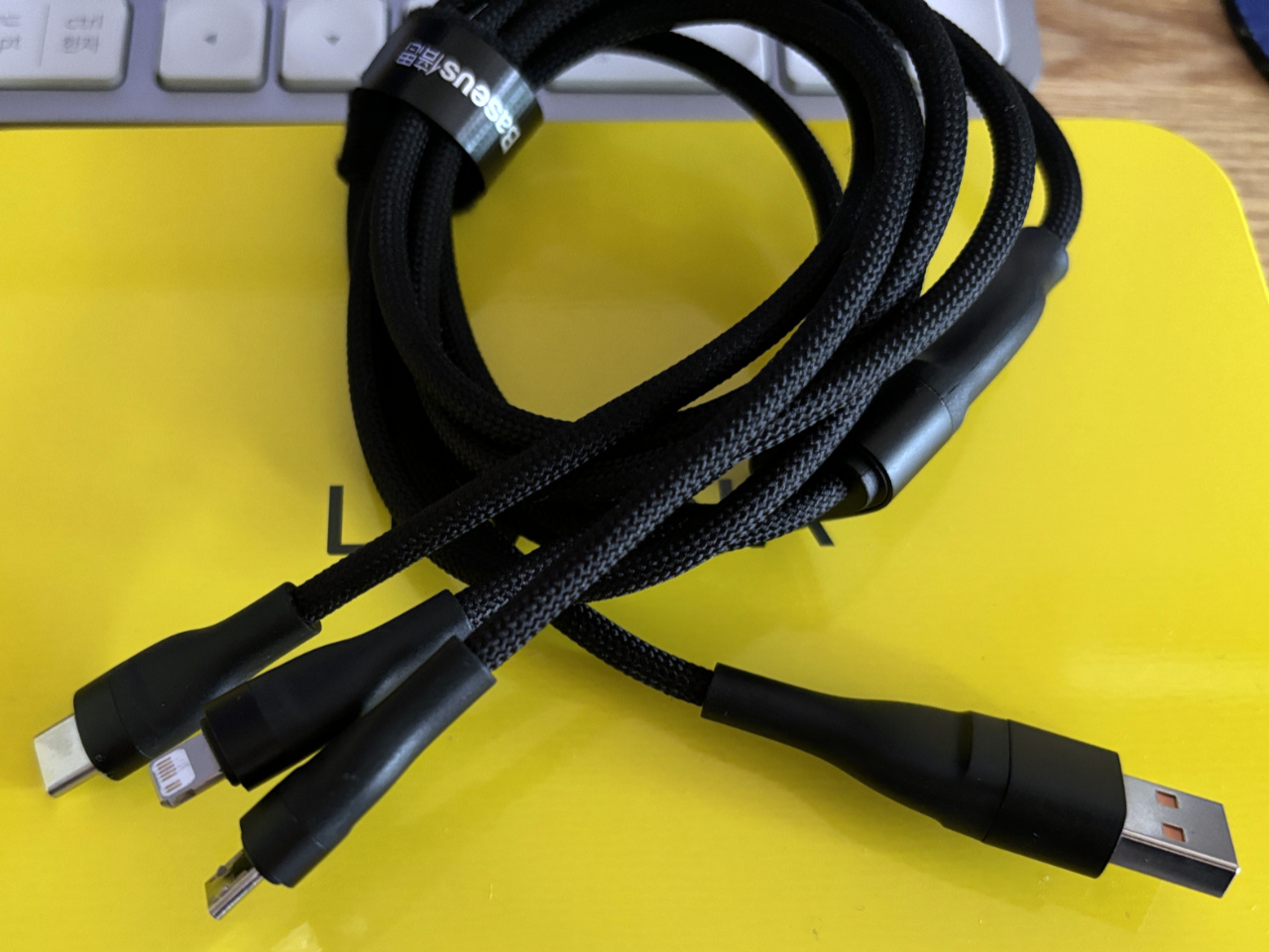 마지막 제품은 한 쪽은 USB-A/C, 반대쪽은 USB-C(100W), Lightning, micro USB가 붙어 있는 다용도 케이블입니다. 이것도 약 1만원대의 제품으로 예전부터 이런 콘셉트의 제품을 하나 구입해볼까 생각은 하고 있었습니다. 리브랜딩을 두 번쯤 한 뒤 이윤을 붙여 판매하는 국내 스토어보다는 베이스어스에서 바로 구입하는 게 가격도 저렴하고 품질도 그나마 낫지 않을까 싶어 할인 품목에 포함되어 있는 이번 기회에 구입했습니다.