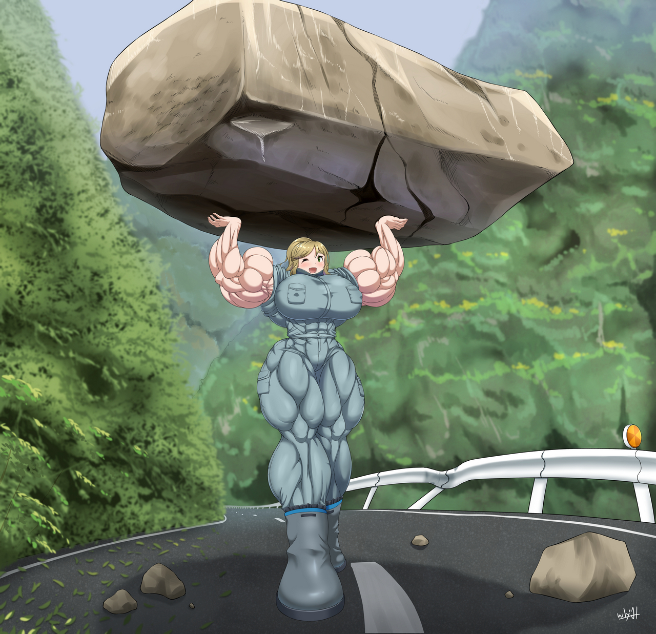 예전 커미션 글에도 말씀드렸듯이 원본에서도 괴력 기믹은 있기 때문에 이걸 한 발짝 더 발전시킨 콘셉트인데요. 작가분이 위키를 읽어보신 건지 우연한 연출인지는 모르겠지만 아슬아슬하게 쌓여 다음 컷에서는 떨어질 것 같은 짐상자 연출도 마음에 듭니다.