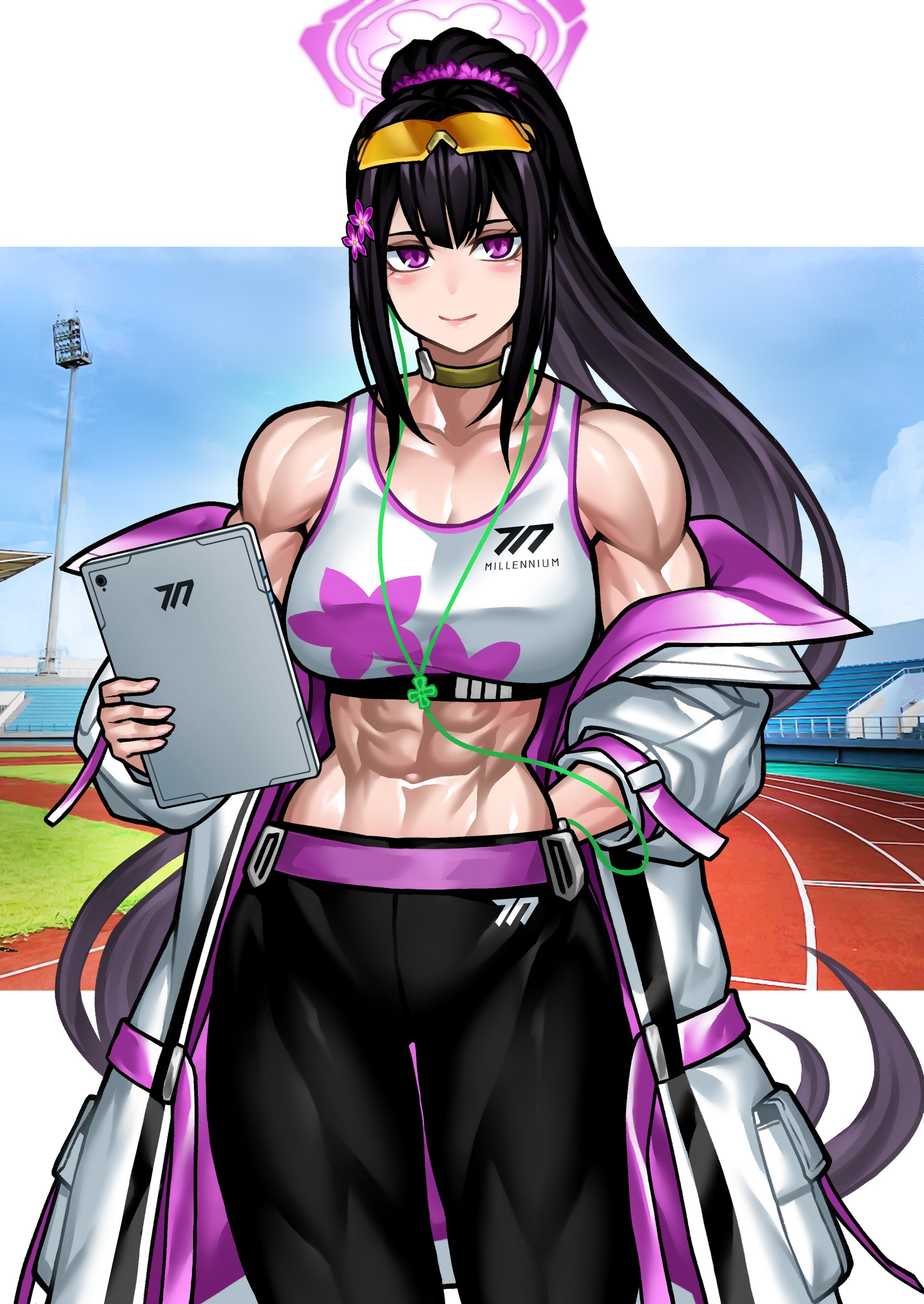 이번 작품 주인공은 스미레로, 트레이닝부 부장답게 운동하러 온 사람들을 관리하는 느낌으로 부탁드렸습니다. 그래서인지 완성품은 홍보 전단이나 핀업 포스터 느낌이 나네요.