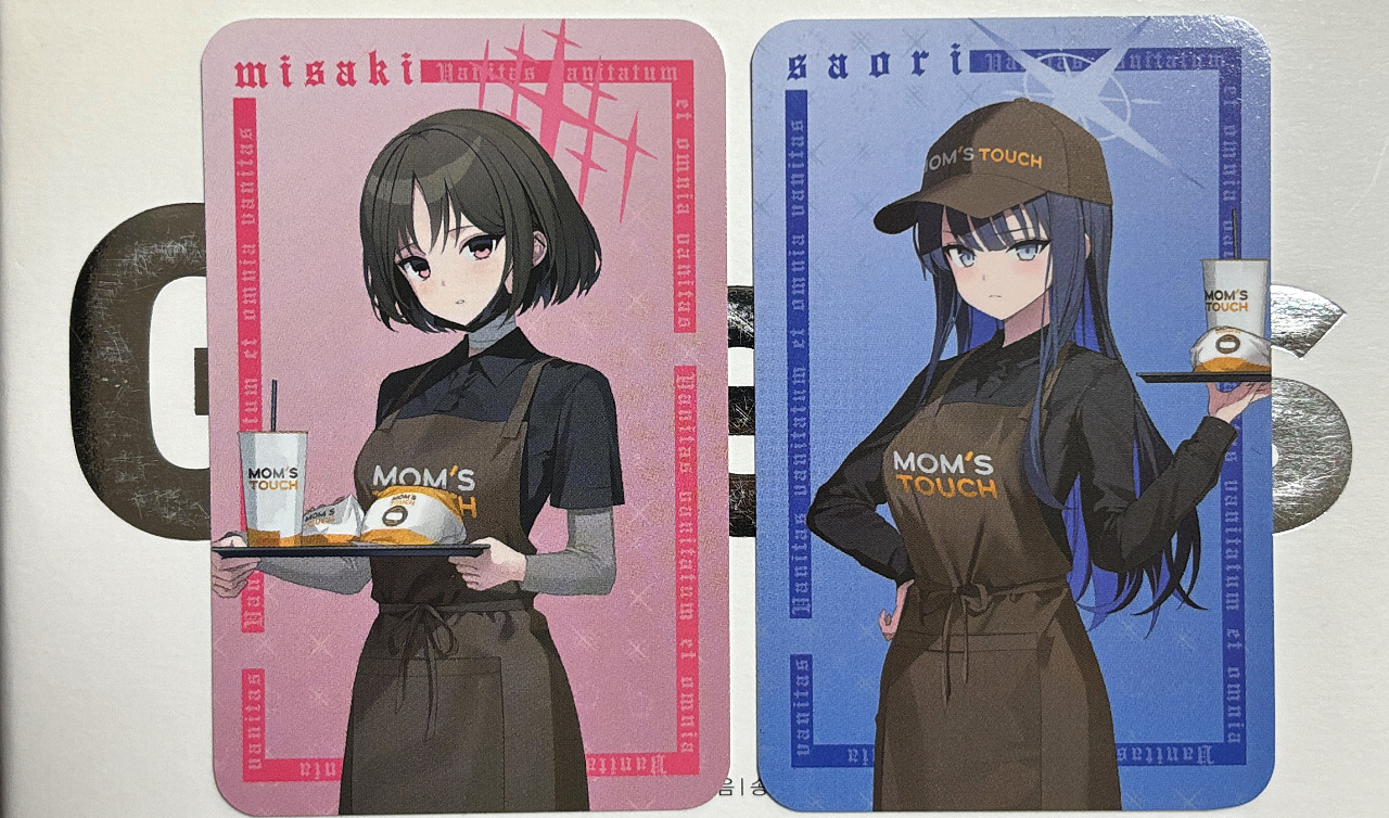 이번주에 또 갈 생각은 없었지만 ‘빅웨이브’를 놓칠 수는 없어 구입한 맘스터치 블루아카 컬래버 세트. 매장에 일찍 갔는데도 배달 주문 쌓이는 소리가 계속 들려.