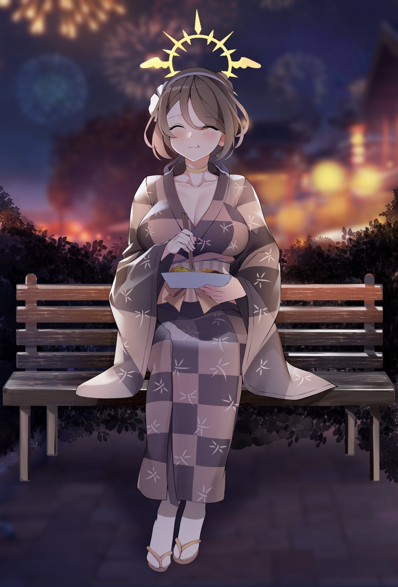 '블루 아카이브' 일본 2.5주년 행사 포스터로 등장했던 히나타입니다. 이런 홍보 일러스트가 으레 그렇듯 인게임에 등장하지는 않았지만, 느낌이 좋으면 유카타 칸나처럼 빅웨이브에 올라타려는 작가들이 팬아트를 그리기도 합니다. 상황 설정은 클리셰를 철저하게 따라 축제 에피소드에 꼭 등장하는 행상에서 파는 야끼소바 먹는 모습으로 했습니다.