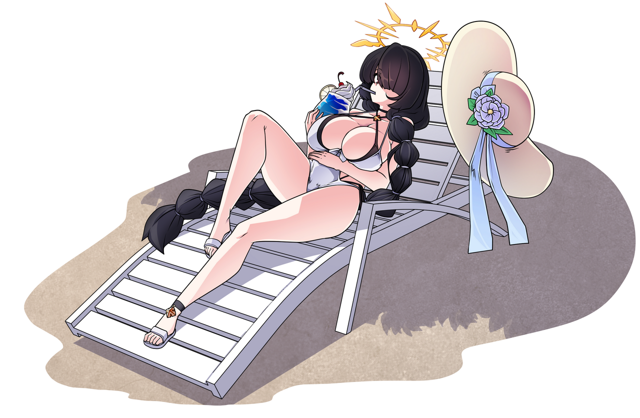 히나타(수영복) 인연스토리에 등장하는, 선베드에 누워있는 모습을 부탁드렸습니다. 원본 스토리에서 이런저런 이유로 편하게 못 쉰다는 이야기였기 때문에 팬아트로나마 편-안하게 쉬는 모습이 있으면 좋겠다고 생각했거든요.