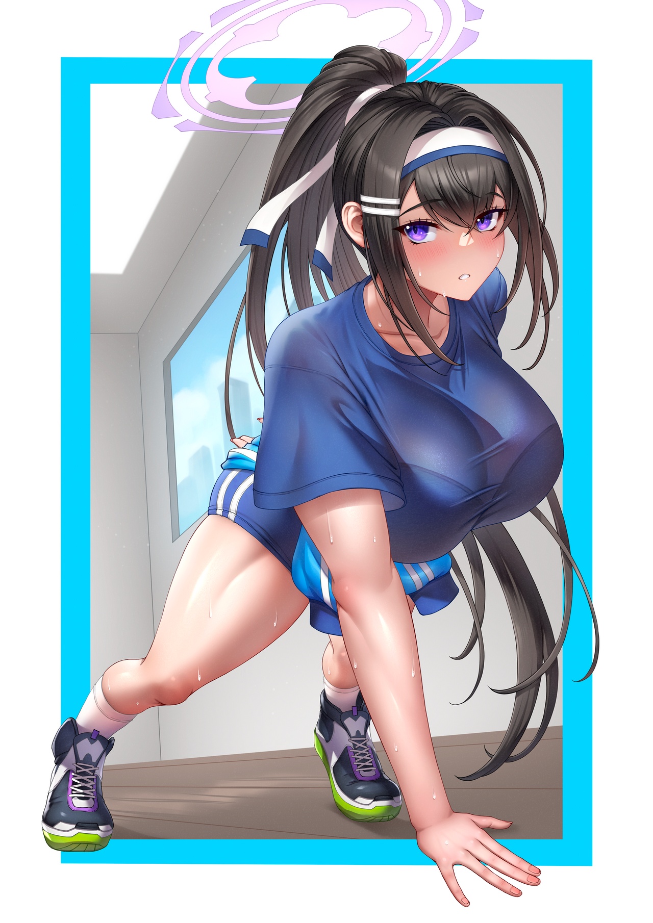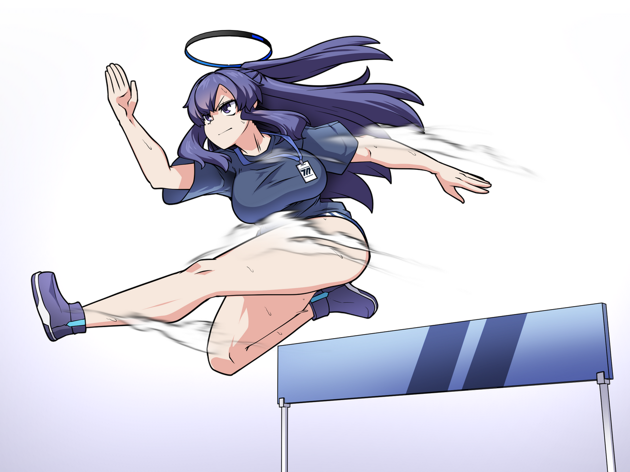 유우카(체육복)가 장애물 달리기를 하는 장면입니다. 작중에서는 달리기에서 6명 중 5등을 할 정도로 책상물림 운동 젬병이라는 설정이지만 팬아트이기 때문에 훈련을 거쳐 운동도 잘 하게 되었다는 설정으로 가 보았습니다.