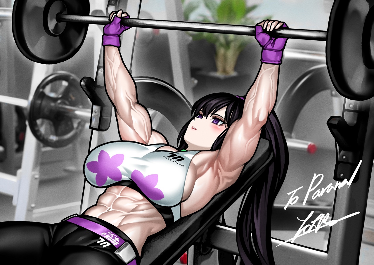 이번 작품은 벤치프레스하는 스미레입니다. 예전 글에서 반쯤 장난으로 스미레에게 3대 운동(스쿼트, 데드리프트, 벤치프레스)을 커미션으로 시켜보고 싶다고 적었던 기억이 있는데, 실제로 완성해버리고 말았네요.