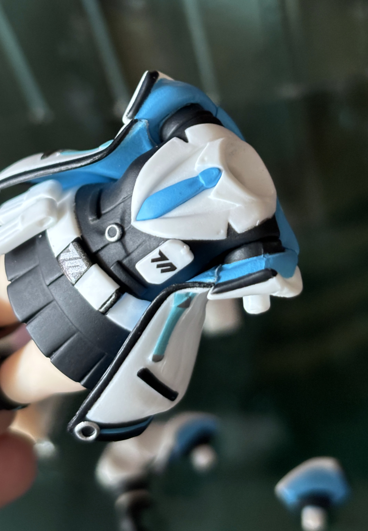 그리고 어깨뽕이 풍성한 자켓을 재현하기 위함인지 어깨가 별도의 부품으로 되어 있더군요. 공식 소개 사진에서는 티가 안 나게 잘 찍었는데, 실제로는 조립할 때 몸통과 딱 맞물리게 하지 않으면 그래픽 깨진 모습처럼 될 수 있으니 조심해야 합니다.