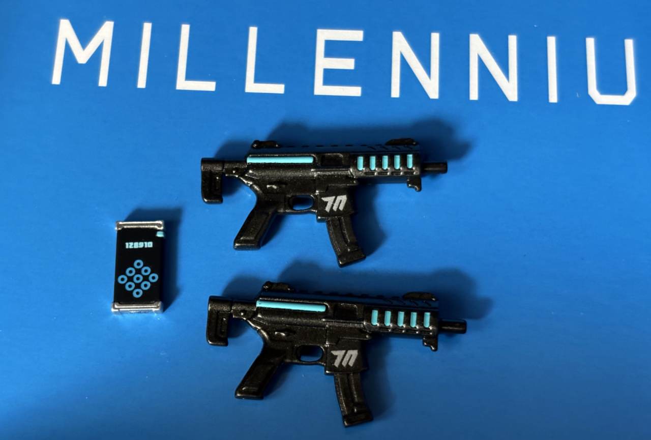 소품으로는 개인화기인 SIG MPX 두 정과 계산기가 들어 있는데, 조립 샘플에도 아예 총 두 개를 들고 있는 모습이 있는 걸 보면 원본 일러스트가 그런 형태인 걸 신경쓴 모양입니다.