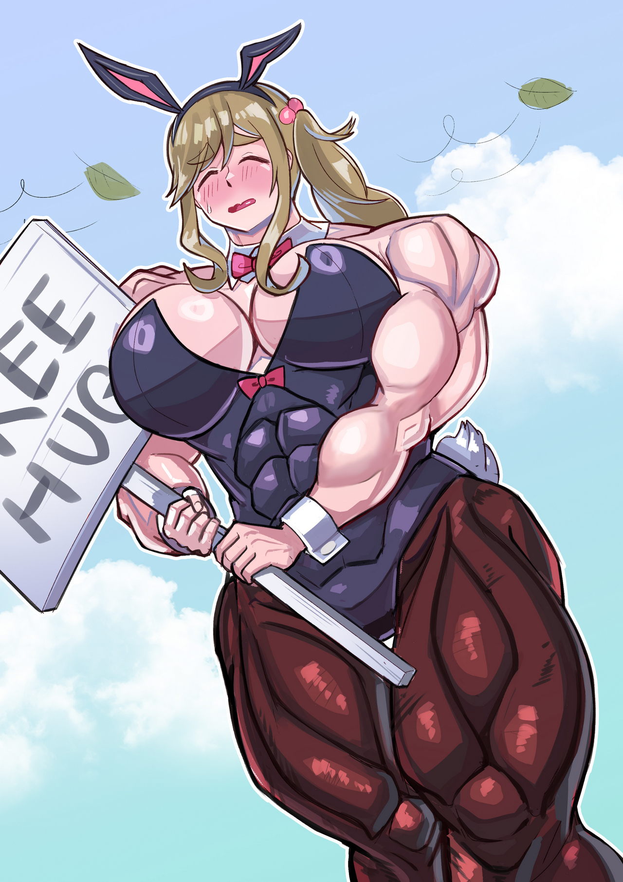 바니걸 복장으로 (한 때 유행한) 프리 허그를 하려는 설정입니다. 다만 사람들이 무서워하는 바람에 다가오는 사람이 없어 '부끄러움은 나의 몫' 상태가 되었다는 연출.