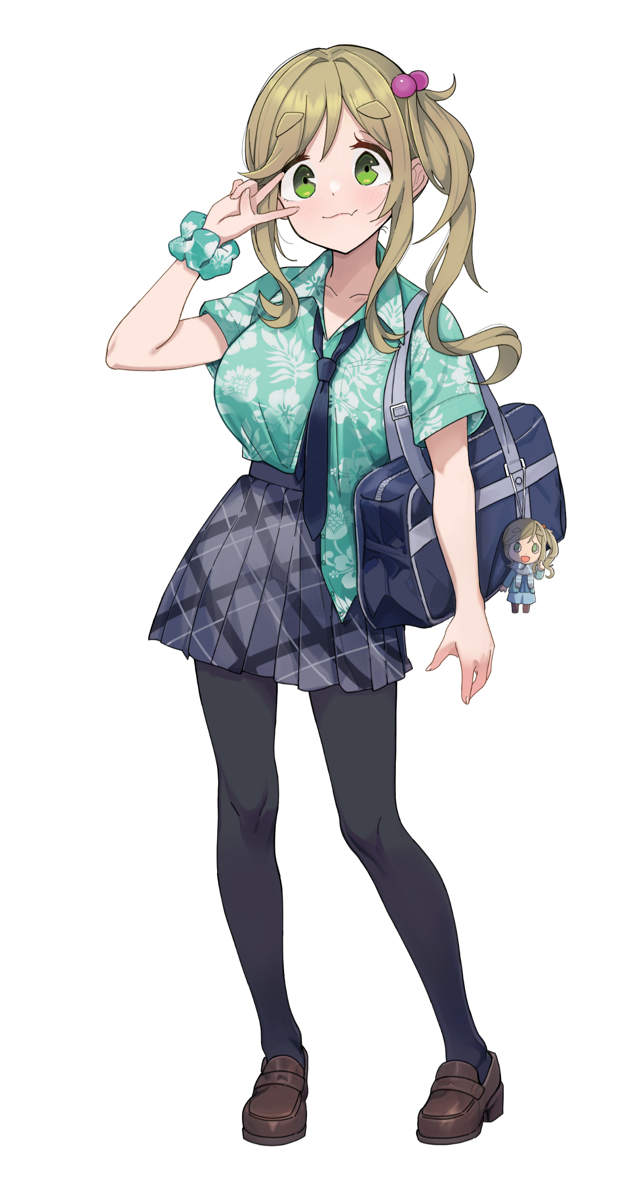 코노카(블루 아카이브) 의상 디자인에서 영감을 얻은, 하와이안 셔츠를 입고 있는 모습입니다. 굳이 따지면 나머지 교복 요소는 원본에서 따 왔으니 전통적인 의상 교환은 아니고 하이브리드 느낌이네요.