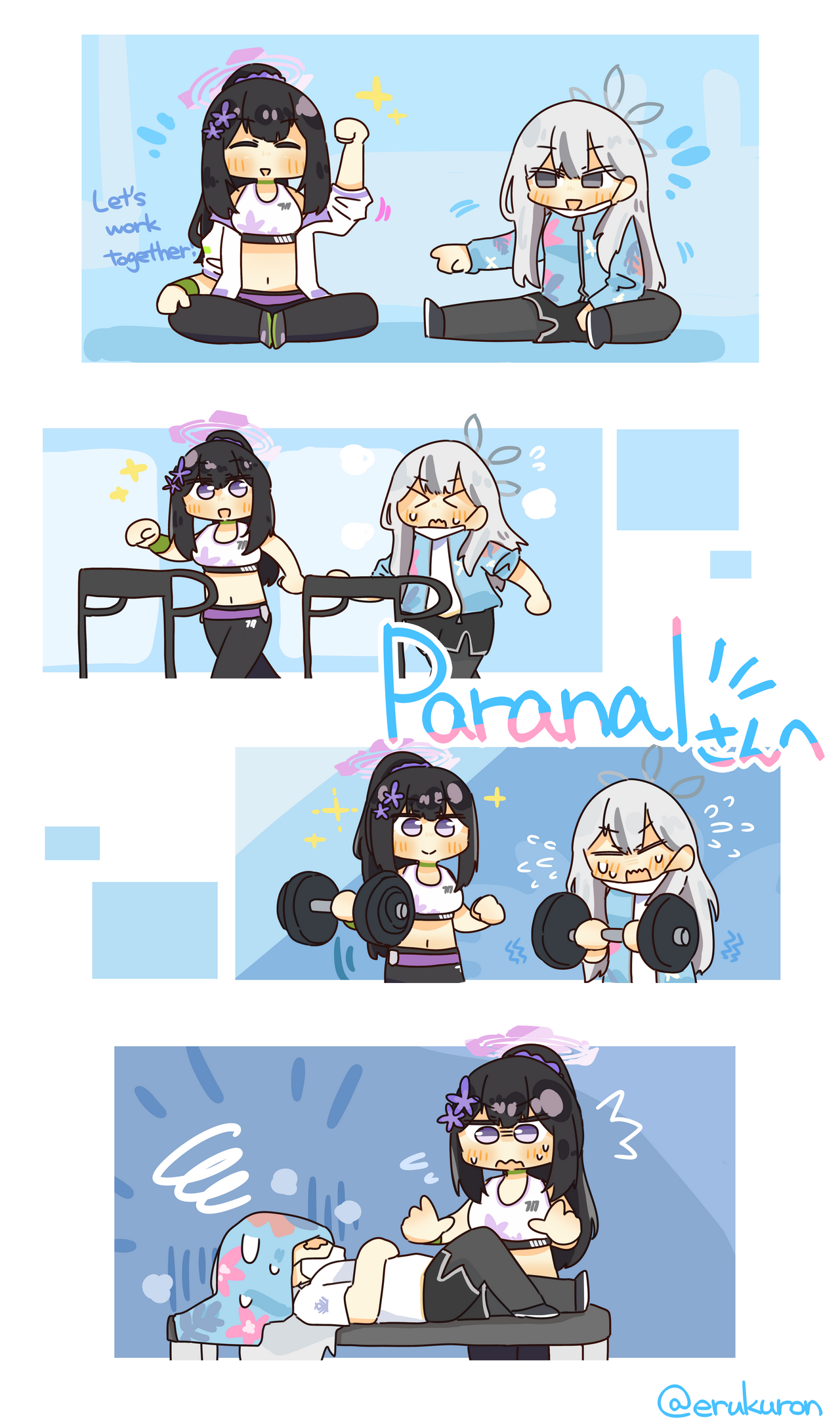 피트니스 센터에서 만난 두 사람. 금방 친해져서 스미레가 1일 트레이너를 자처하게 되는데... 라는 설정입니다. 원작에서도 하드한 트레이닝 코스를 견디지 못하고 트레이닝부에 입부하려던 몇 없는 사람들이 십 리 밖으로 도망친다는 설정이 있다는 걸 바탕으로 구상한 전개입니다.