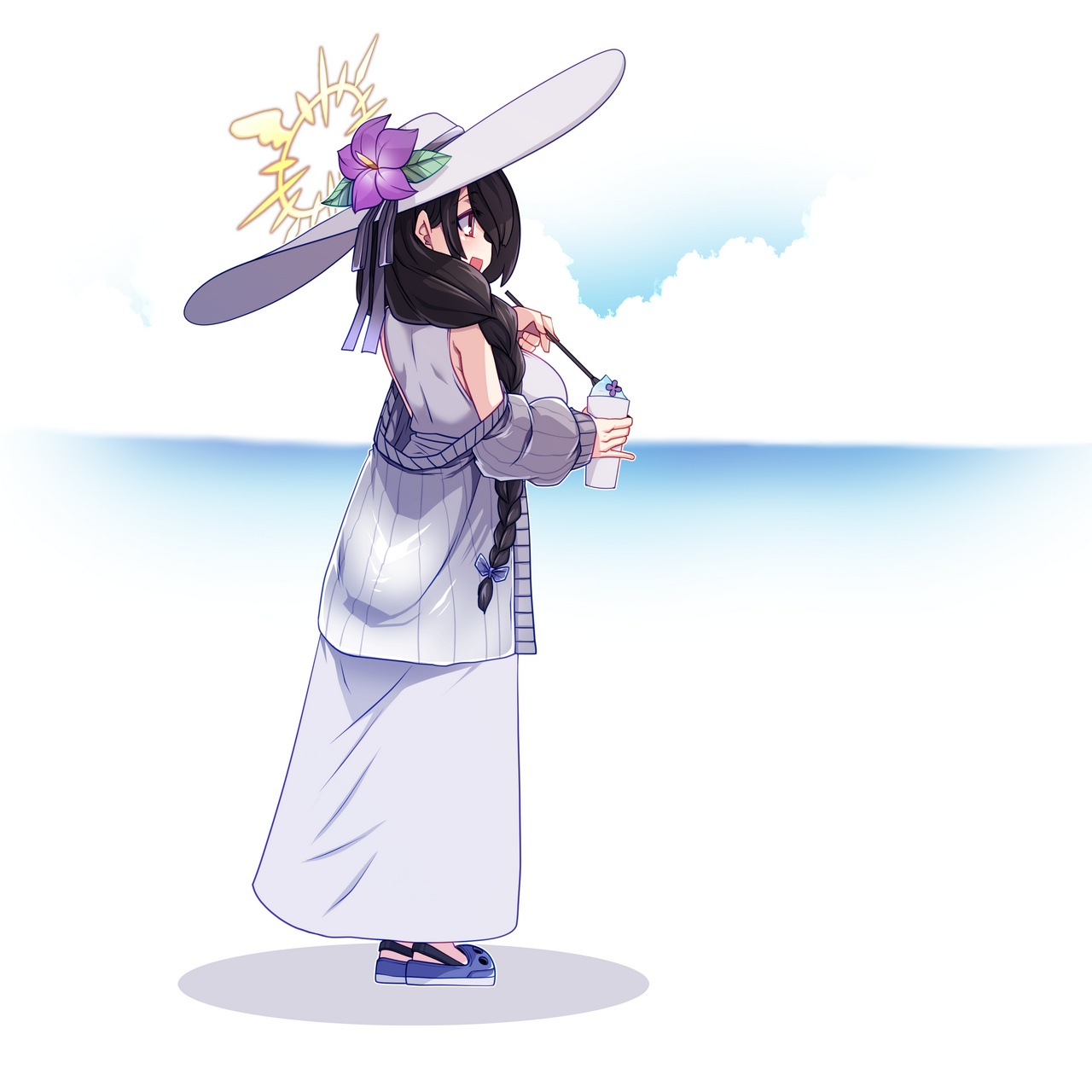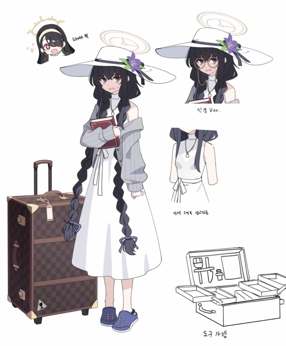 우시오 노아(블루 아카이브)가 하루히 시리즈의 키타고 복장을 입은 콘셉트입니다. 사실 이 아이디어는 지난 번에 키타고 복장을 입은 우이를 의뢰해 후순위로 밀릴 뻔 했습니다만 8월은 '엔들리스 에이트'의 시즌이라는 걸 떠올려 우선순위가 올랐습니다.