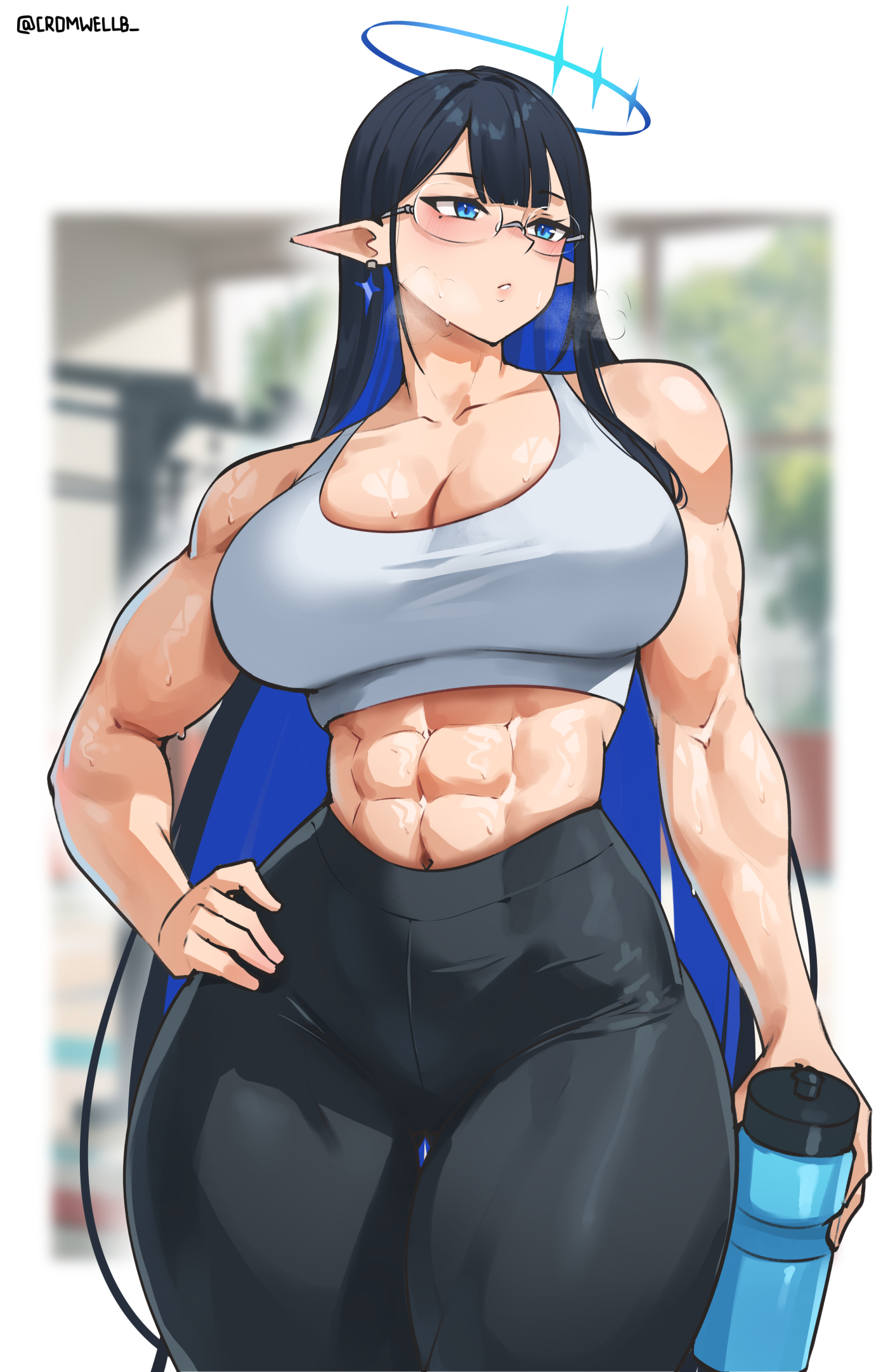 그 중 첫 작품은 fieryonion 작가에게 의뢰했습니다 (기간은 8월 14일에서 20일). 그림 자체는 크게 설명할 게 없는, 체육관에서 덤벨 컬하고 있는 모습입니다. 구상할 때에는 서 있는 모습을 상상하고 자료를 보내 드렸었는데 앉아 있는 모습으로 그려 주셨더군요.