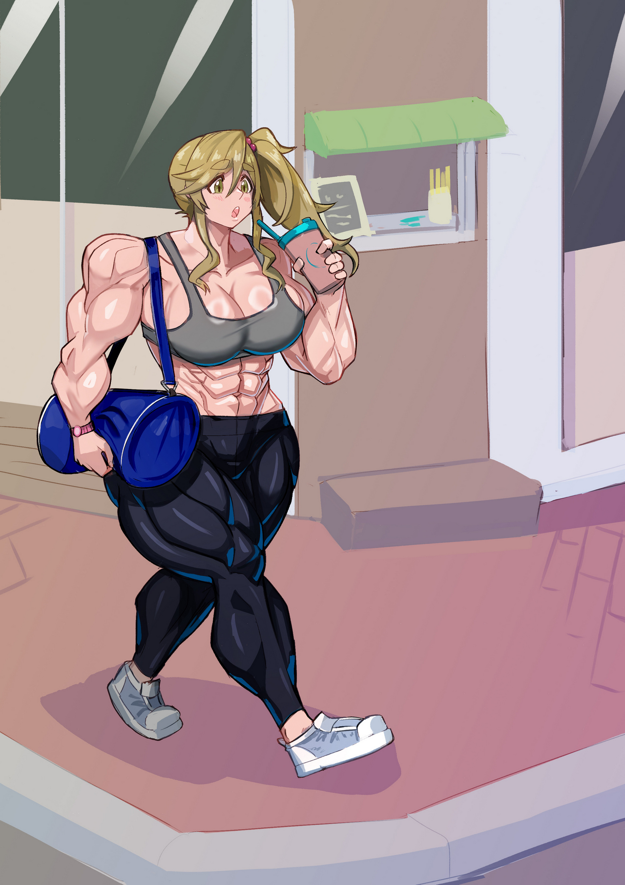 cell 작가에게 의뢰한 작품-기간은 8월 12일에서 15일-인데, 아이스 커피를 마시며 피트니스 센터로 향하나는 콘셉트입니다.