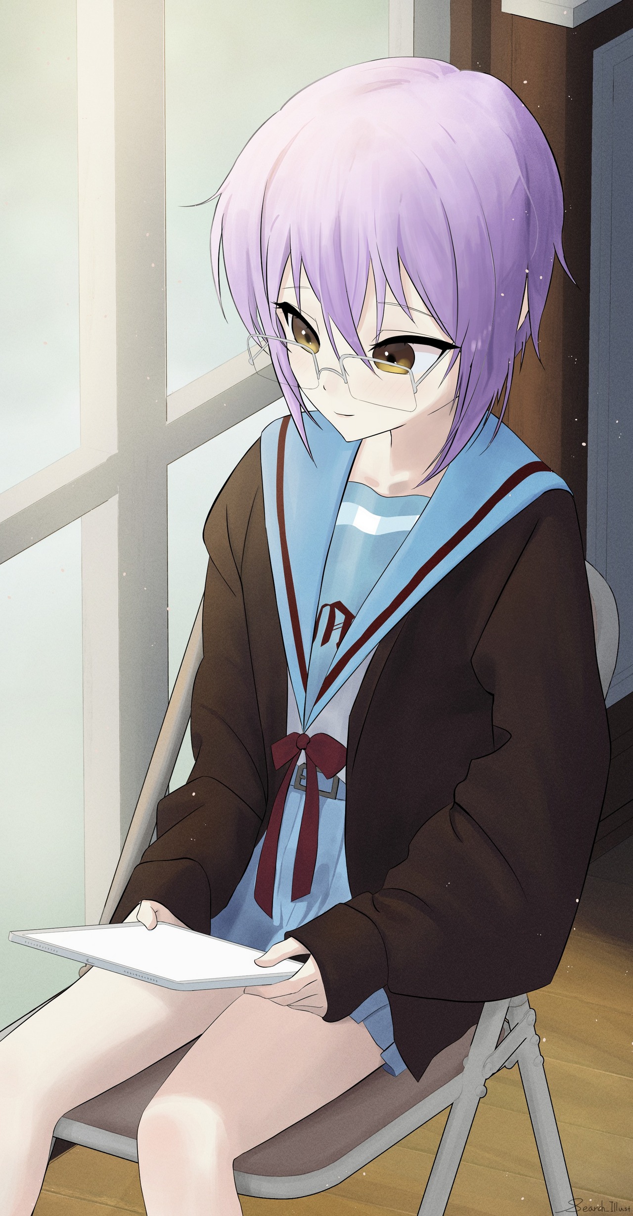 타블렛 들고 있는 나가토라는 콘셉트입니다. 이 아이디어도 잊을만하면 재활용하기는 합니다만, 작가에 따라 느낌이 달라지는 게 재밌어 다시 꺼내 쓰게 됩니다.