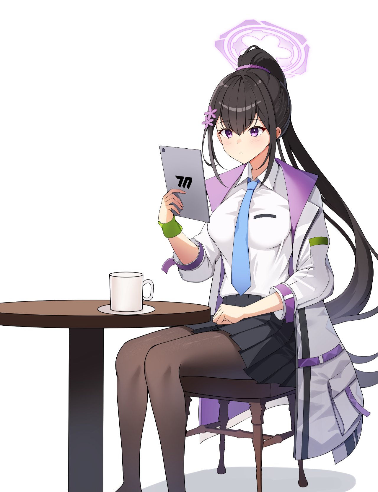 밀레니엄 교복 차림으로 커피숍에서 공부하는 모습입니다. 예전에 교복을 입은 스미레를 의뢰해 봤는데, 제법 신선해서 재활용해봐겠다 싶었는데 상술한 대로 기회가 생겨 SD 데포르메 외의 화풍으로도 실현할 수 있게 되었네요.