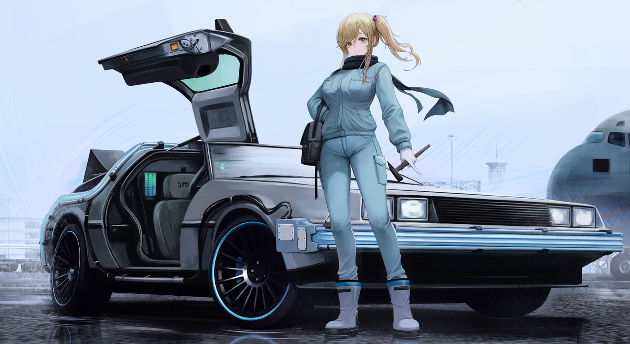 차량 자체는 예쁜 쓰레기라는 게 중론이지만 영화 "백 투 더 퓨처" 시리즈에 등장해 문화 아이콘으로 박제된 드로리언(DeLorean) 자동차 회사의 DMC 드로리언 앞에서 포즈 잡고 있는 콘셉트입니다. 꽤나 힙하게 나와서 어차피 켜고 끌 때만 본다는 이유로 기본 설정에서 바꾸지 않는 PC 배경화면을 이 그림으로 바꿀 정도로 마음에 들었네요.