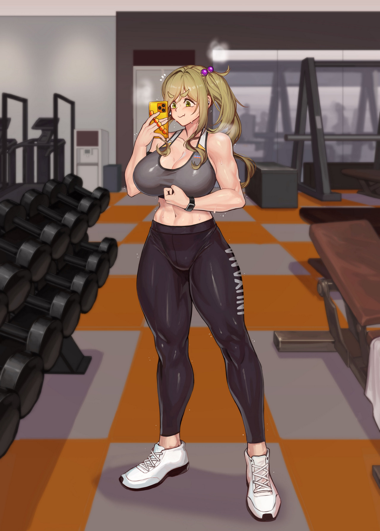 운동하면서 중간에 수분 보충한다는 콘셉트인데요. 새삼스럽지만, 이 운동 복장은 예전에 커미션에 오마카세로 만들어달라고 한 이후로 다른 커미션에도 유용하게 사용하고 있습니다.