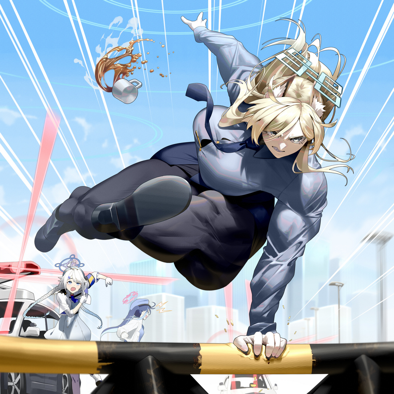 검문에 불응하는 용의자 쫒는 칸나라는 콘셉트인데요. 여담으로 해당 아이디어 자체는 꽤 오랫동안 품고 있었는데, 한 컷으로는 어떤 식으로 표현해야 재밌을지 아이디어가 떠오르지 않아 방치되고 있었는데, 작가분께서 저의 중언부언한 설명을 잘 구현해 주셔서 매우 만족스럽습니다.