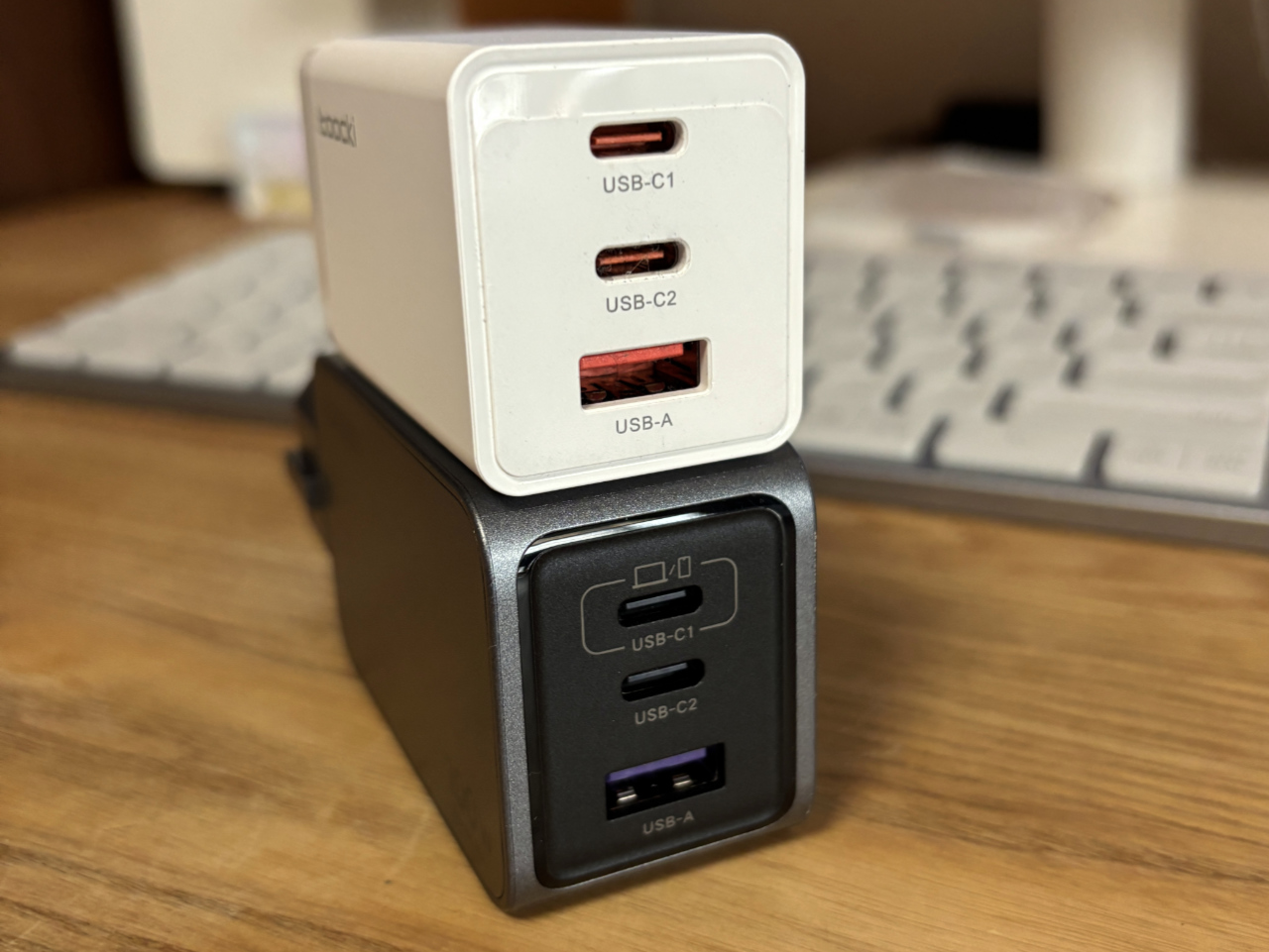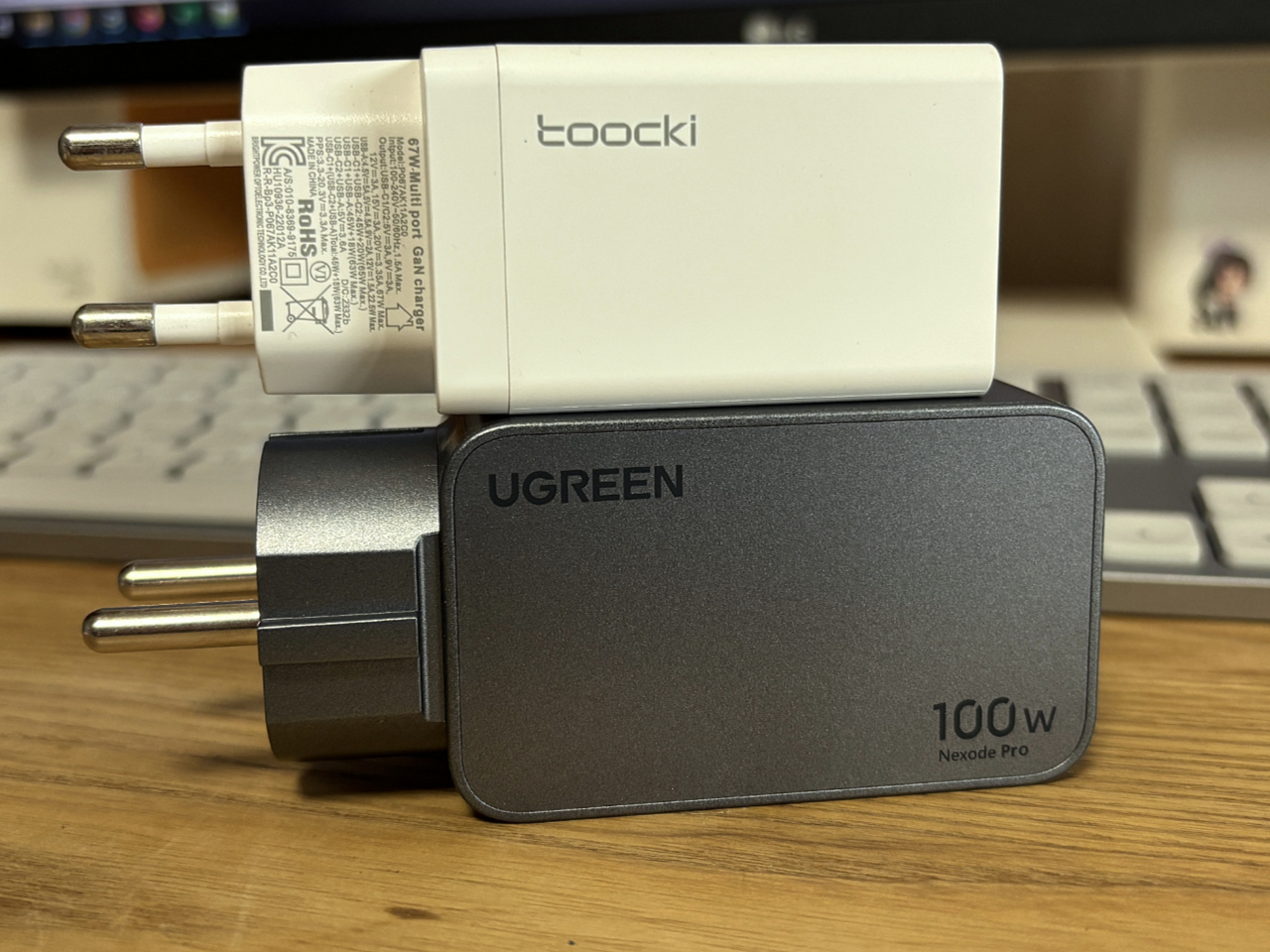 (비교샷으로 등장한 흰색 제품은 한 때 한국 핫딜 게시판 인기 상품이었던 Toocki 66W 충전기)