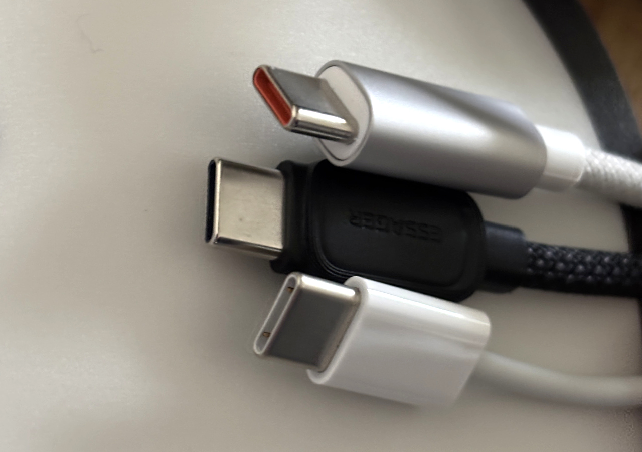 USB 단자 부분도 너무 과장되게 크게 만들지 않아 좋았습니다.'튼튼함'을 강조하기 위함인지 과장 섞어 C 단자 두께의 2배로 그립 부분을 만드는 회사들이 있더군요 (사진에서 최상단인 Baesus 제품은 iPad 단자에 끼우면 플러그 외장이 본체보다 두꺼워).