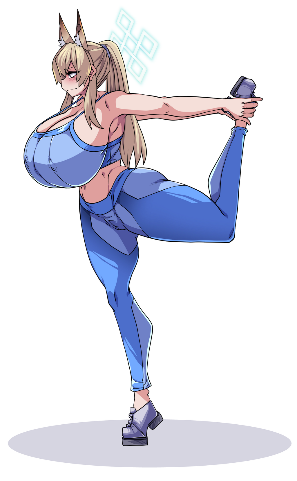 평범하게 트레이닝복 입고 스트레칭하는 모습입니다. 유달리 특정 부위가 빵빵하진 건 작가 취향일 겁니다.