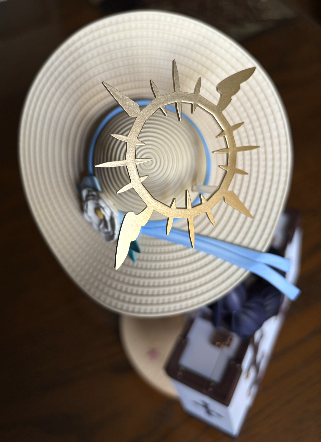 모자는 탈착 가능한데, 모자 위치 고정을 헤일로 고정용 막대에 의존하는 형태라는 게 눈에 띄었습니다. 피겨에 모자를 '예쁘게' 얹는 게 은근히 힘들어서 괜찮은 아이디어라 생각합니다. 원본 고증을 위해서는 모자가 있어야겠지만 방에서는 조명이 위쪽에 있으니 얼굴에 너무 그림자가 지는 문제가 있어서 모자 없이 전시해야 하지 않을까 싶기도 한데, 일단 글을 쓰는 현시점에서는 씌워두고 있습니다.