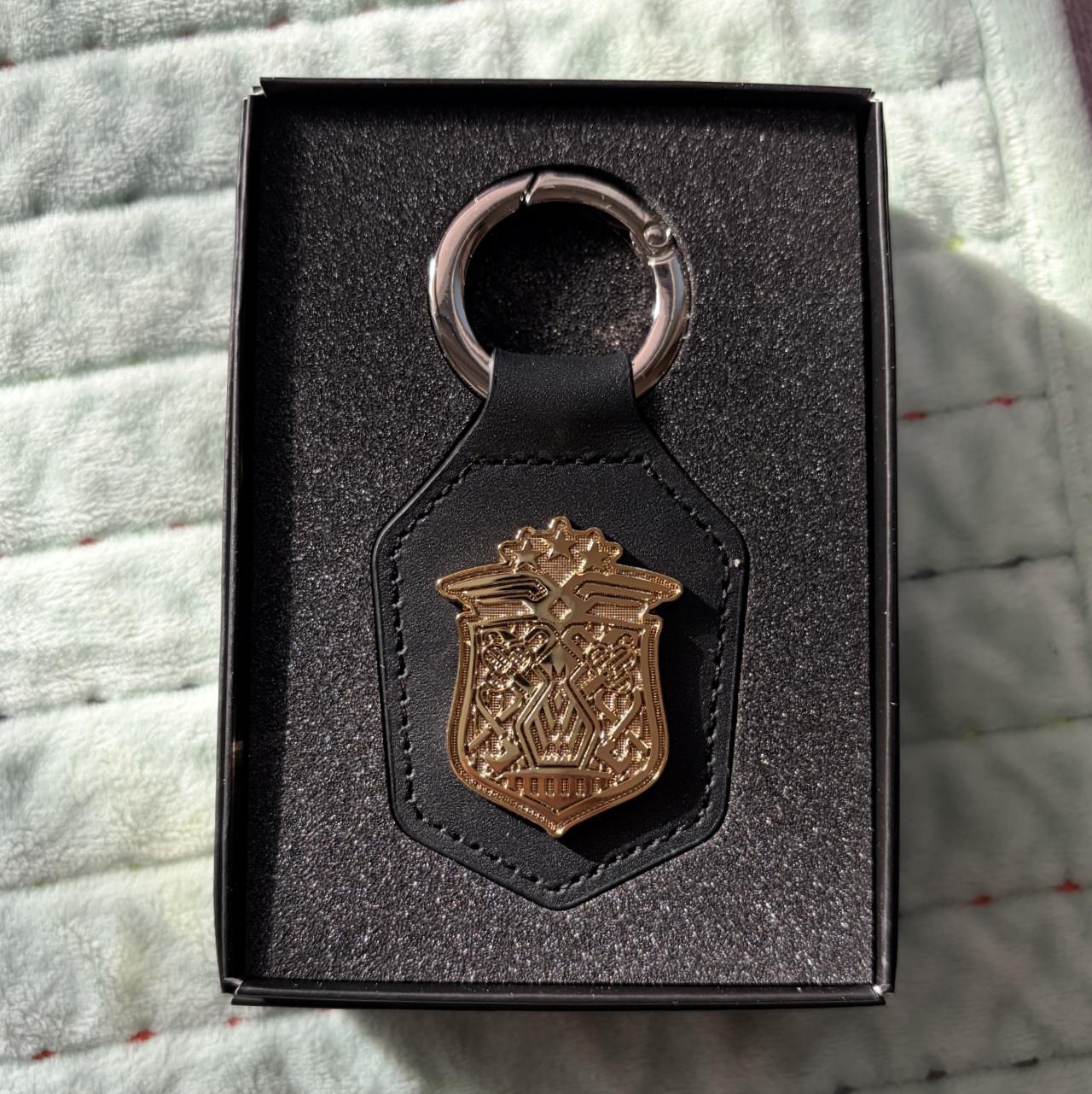 뒷면에는 발키리 경찰학교 약어인 KSPD(Kivotos Student Police Department)가 로마자로 찍혀 있는데, 앞면도 그렇지만 아는 사람이 보면 알지만, 모르는 사람이 보면 모르는 느낌.