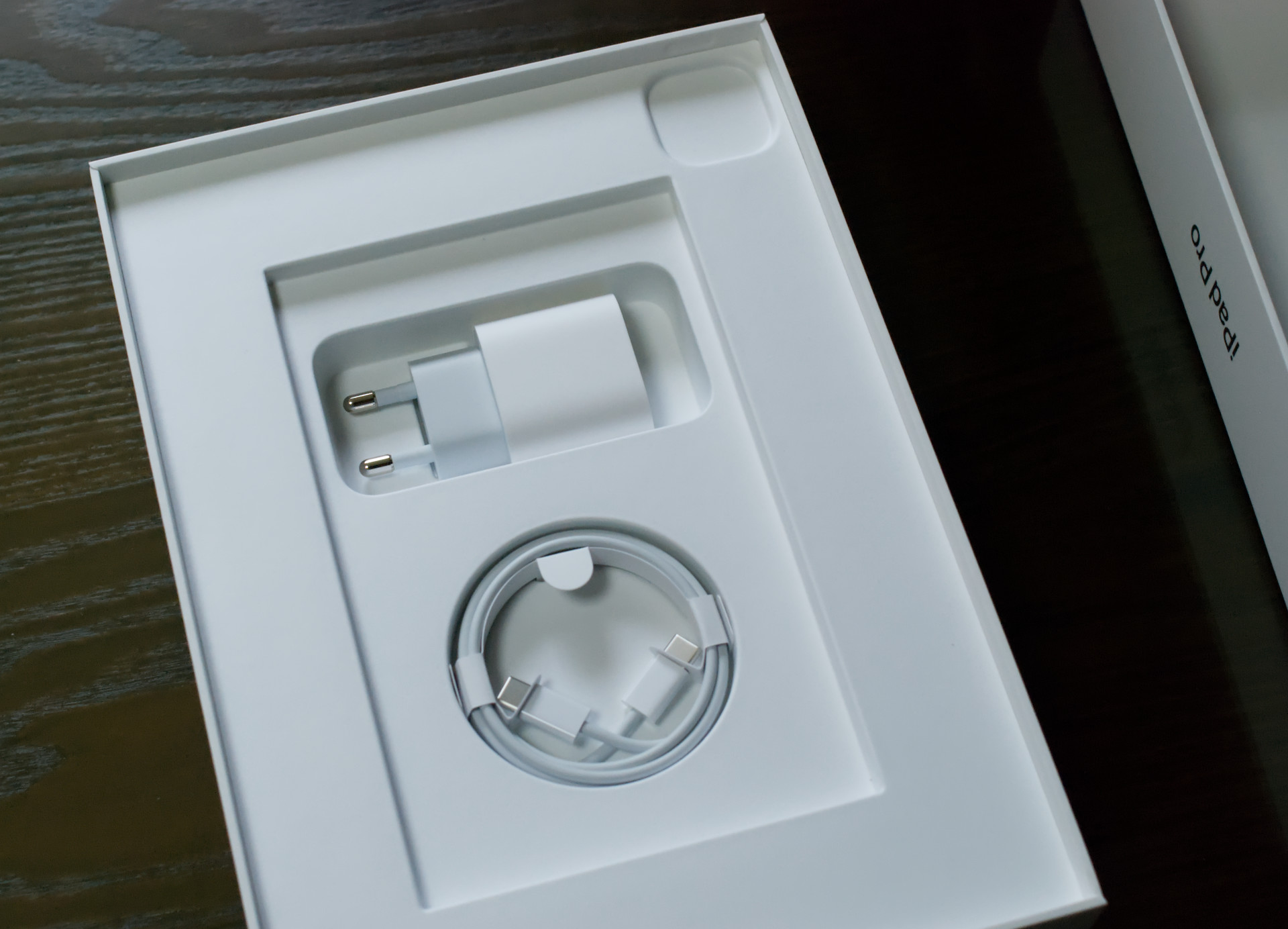 그렇게 주문 이틀만에 뽁뽁이로 가득 찬 큰 상자가 도착했습니다. 상자 디자인은 대동소이한데 먼저 검은 본체가 나를 맞아주고 그 밑에는 18W USB-C 전원 어댑터, USB-C 충전 케이블이 들어 있습니다. 참고로 공식 문서에서 굳이 이를 '충전 케이블'이라 명시한 이유는 고속 데이터 전송은 지원하지 않기 때문입니다.