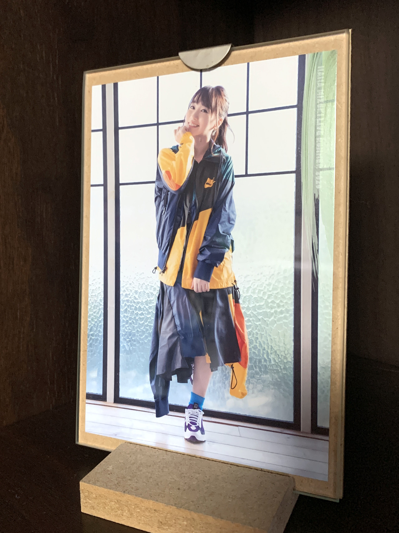 사진이 아닌 '엽서'이기 때문에 최근에 사용하는 책자형 소형 사진 액자에는 들어가지 않습니다. 그래서 잡동사니 서랍에서 원래는 중형 사진을 넣는 용도로 나운 액자를 꺼내 왔습니다. 부품 분실을 막으려고 둘러놓은 고무줄이 삭아서 끊어질만큼의 방치해뒀는데, 유리만 세정제를 뿌려 앞뒤로 뽀독뽀독 닦아주니 괜찮아졌네요. 다이소 발 제품이어서 다른 부분은 합판인 게 오히려 도움이 되었습니다.