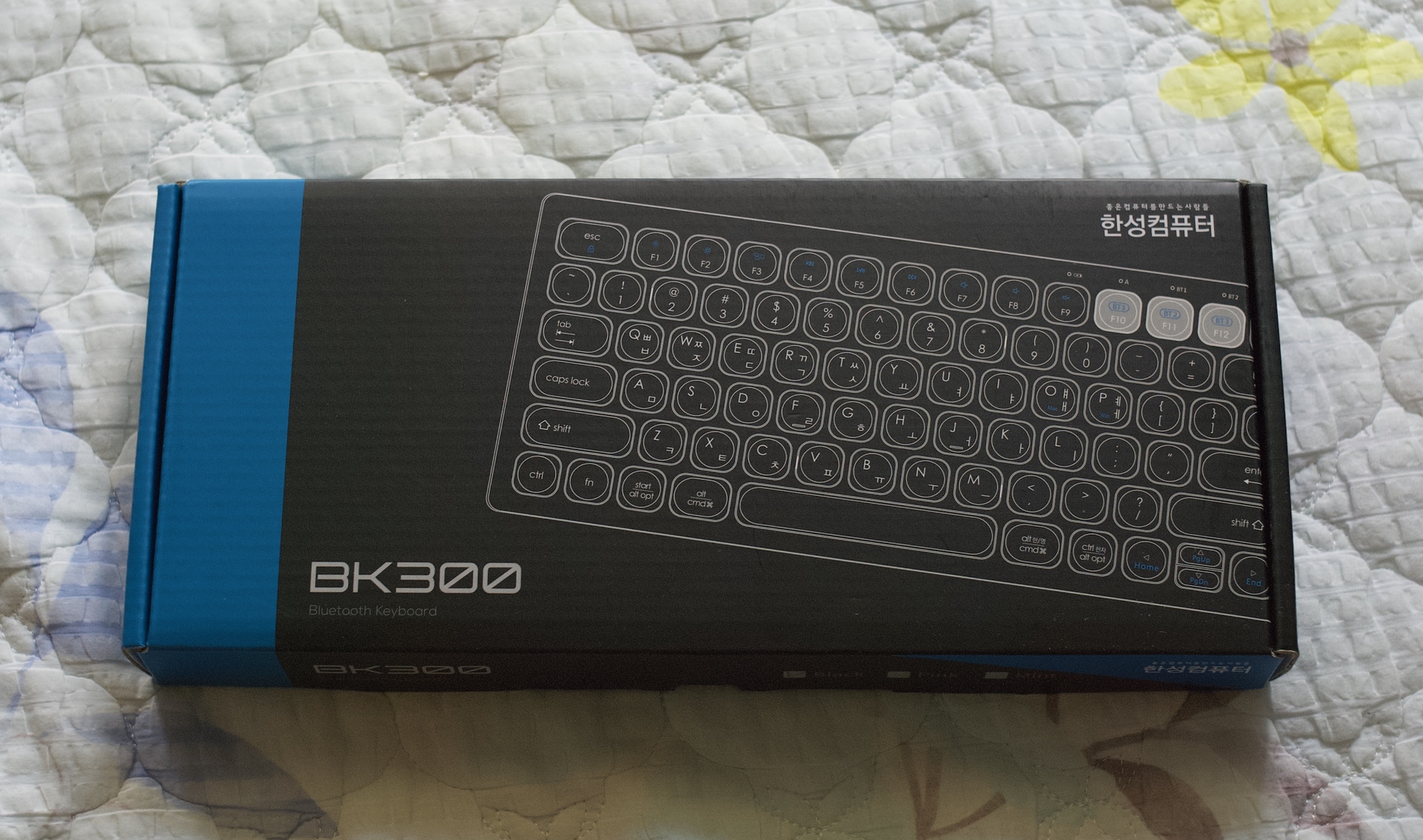 로지텍 K380 블루투스 키보드는 출시된 지 제법 되었지만 휴대용으로는 스테디셀러이지요. 그런데 위에서 언급한 로지텍 특가 행사 관련글을 읽다가 한성에서 나온 BK300 블루투스 키보드가가격은 약간 더 저렴하고-로지텍은 3만원대, 한성 제품은 2만원 대-성능은 비슷하다는 덧글을 봤습니다. 이미 마우스로 인해 악세서리 구매에 대한 장벽이 낮아진 상황에서 그런 덧글까지 보니 참을 수가 없더군요. 연휴 마지막날인 월요일에 주문했더니, 업체가 마침 일하고 있었는지 배송을 해서 하루만에 현관 앞에 도착했습니다.