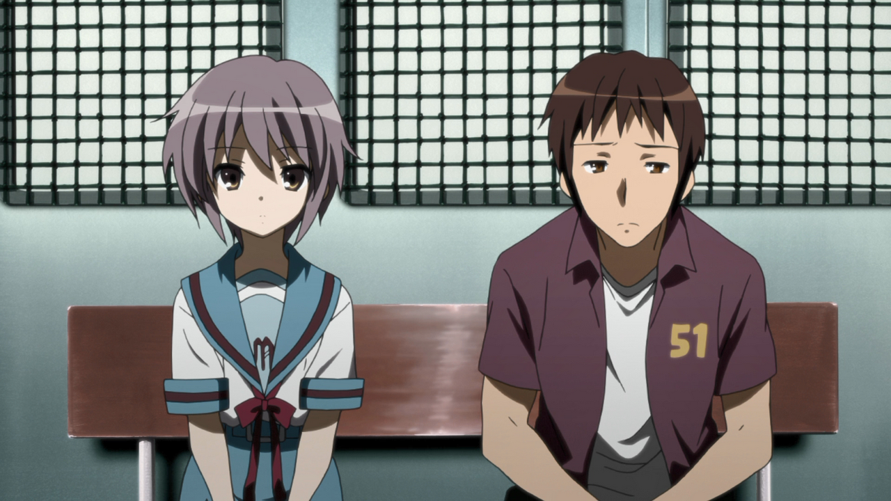 세계가 보름짜리 반복에 갇혀 있음을 깨달은 후, 하루히의 방학 활동 체크리스트에 포함된 배팅 센터에서 대기실 의자에 쿈과 나가토 둘이 앉아 다음과 같은 대화를 나누죠.