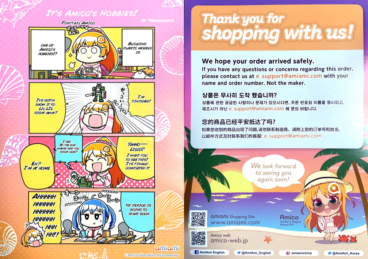마지막으로 아미아미에서 주문할 때 첨부하는 '감사 카드'에는 마지막으로 주문했을 때에는 일러스트가 들어갔는데 이제는 네 컷 만화(영어)가 실려 있더군요.