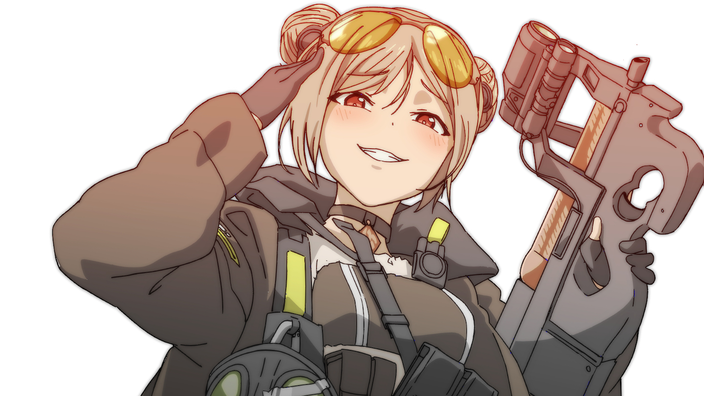 이번 캐릭터는 커미션으로는 네 번째인 소녀전선의 P90입니다. 전투에서 승리한 뒤 상대를 내려다보며 smug face😏-일본어로는 도야가오(どや顔)혹은 게스가오(ゲス顔)라고 하는-를 짓고 있는 모습입니다. 오랜만에 저의 취향 중 하나를 걷어낸 '평범한' 체형이며, 1년여만에 캐릭터의 원본 모델이 된 총이 등장했다는 점이 관전 포인트겠지요.