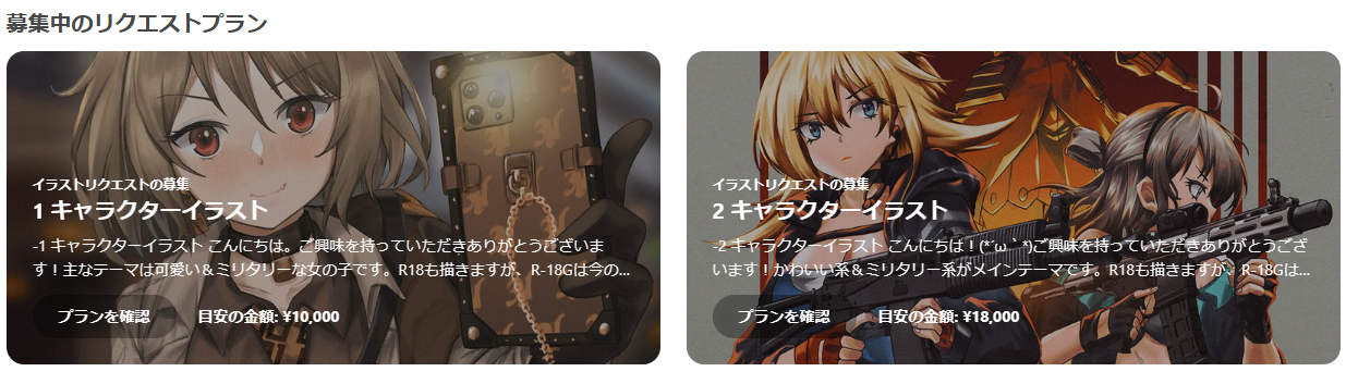 이런저런 고민 끝에 작년에 SIG MCX와 P90을 의뢰한 적이 있던 작가에게 의뢰하기로 했습니다. 해당 작가는 한동안 리퀘스트를 쉬다 작년 말 어느 시점에 같은 가격으로 리퀘스트를 여셨더군요. 소녀전선 주제도 아니어서 (더 저렴한) 새 작가를 찾는 여행을 떠난다는 선택지도 있었지만, 커미션 예시 헤더로 제가 의뢰했던 P90 일러스트를 쓴 게 인상깊어 여기에 신청했습니다.
