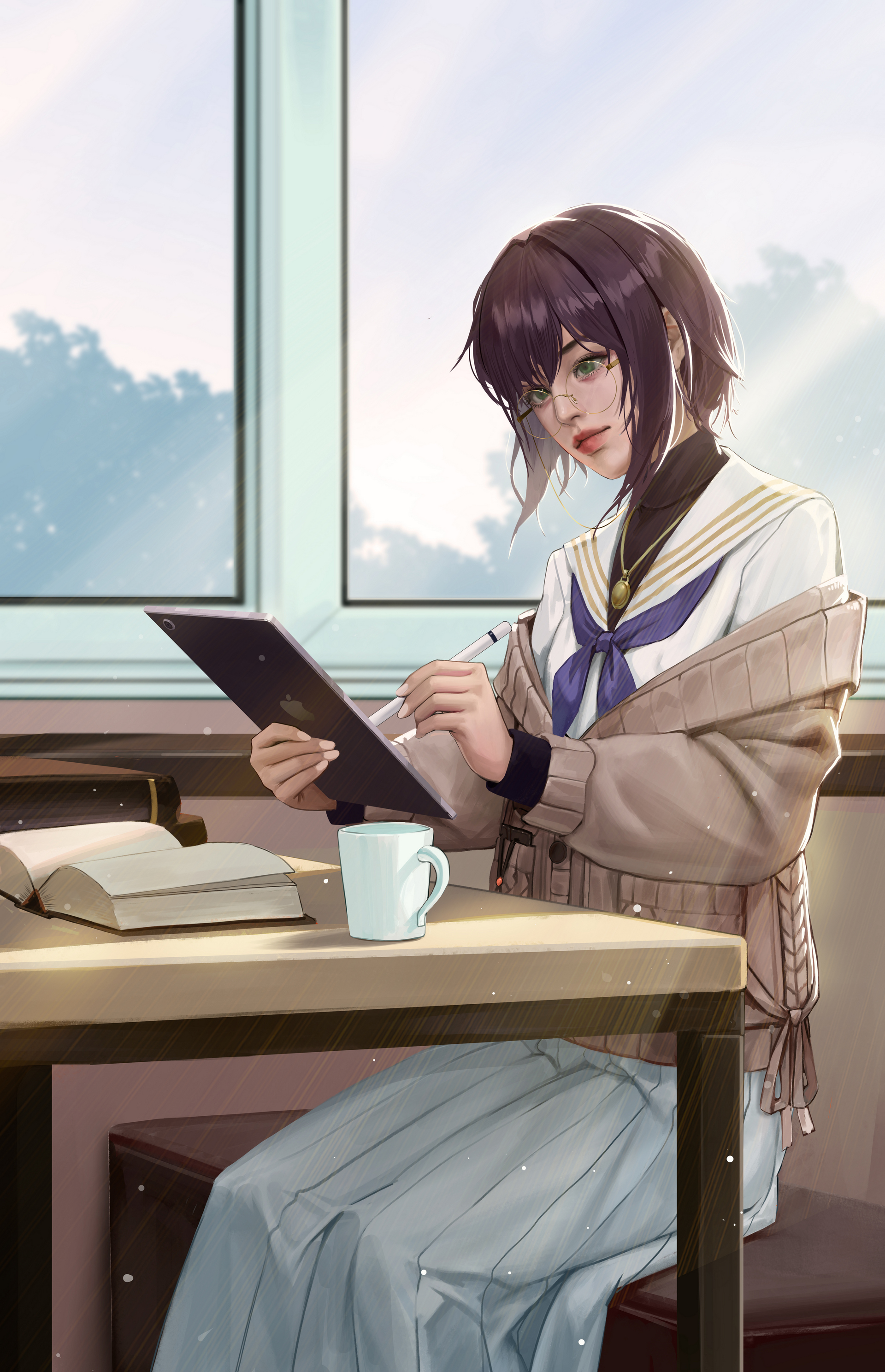 나가토 유키가 코제키 우이(블루 아카이브) 의상을 입고 있는 모습입니다. 요즘은 여러 이유로 귀하다는 '열람실 용도로 사용되는 열람실'을 배경으로 설정했는데 나름 태블릿을 넣어 모-던한 분위기를 내 봤습니다. 다만 '도서관에서 뚜껑도 없는 머그를 사용하는 건 괜찮은가?'라고 태클이 들어온다면 사실은 SOS단 부실이라고 변명하는 플랜 B도 있습니다.