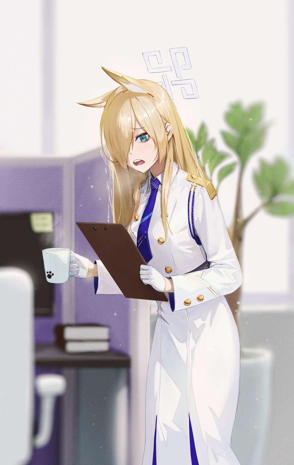 모종의 이유로 칸나가 임시로 방위실장을 맡은 'What if?'를 상상해 총학생회 복장을 입고 있는 모습을 커미션했습니다. 대사 없이도 일에 '쩔어' 있는 느낌이 자연스럽게 우러나는 게 좋네요.