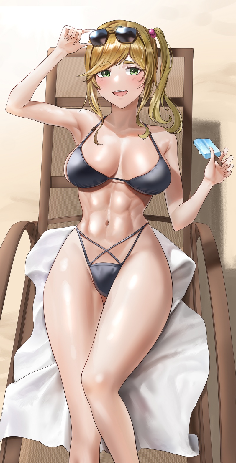 딱히 설명이 필요한 그림은 아니지만, 선베드에 누워 있는 이누야마 아오이(유루캠)입니다. 본편에서는 수영복 입은 모습이 상상도로 딱 한 컷 나왔지만 여름에 수영복 의상을 구상하지 않는 건 직무유기라고 생각해 의뢰한 컨셉입니다.